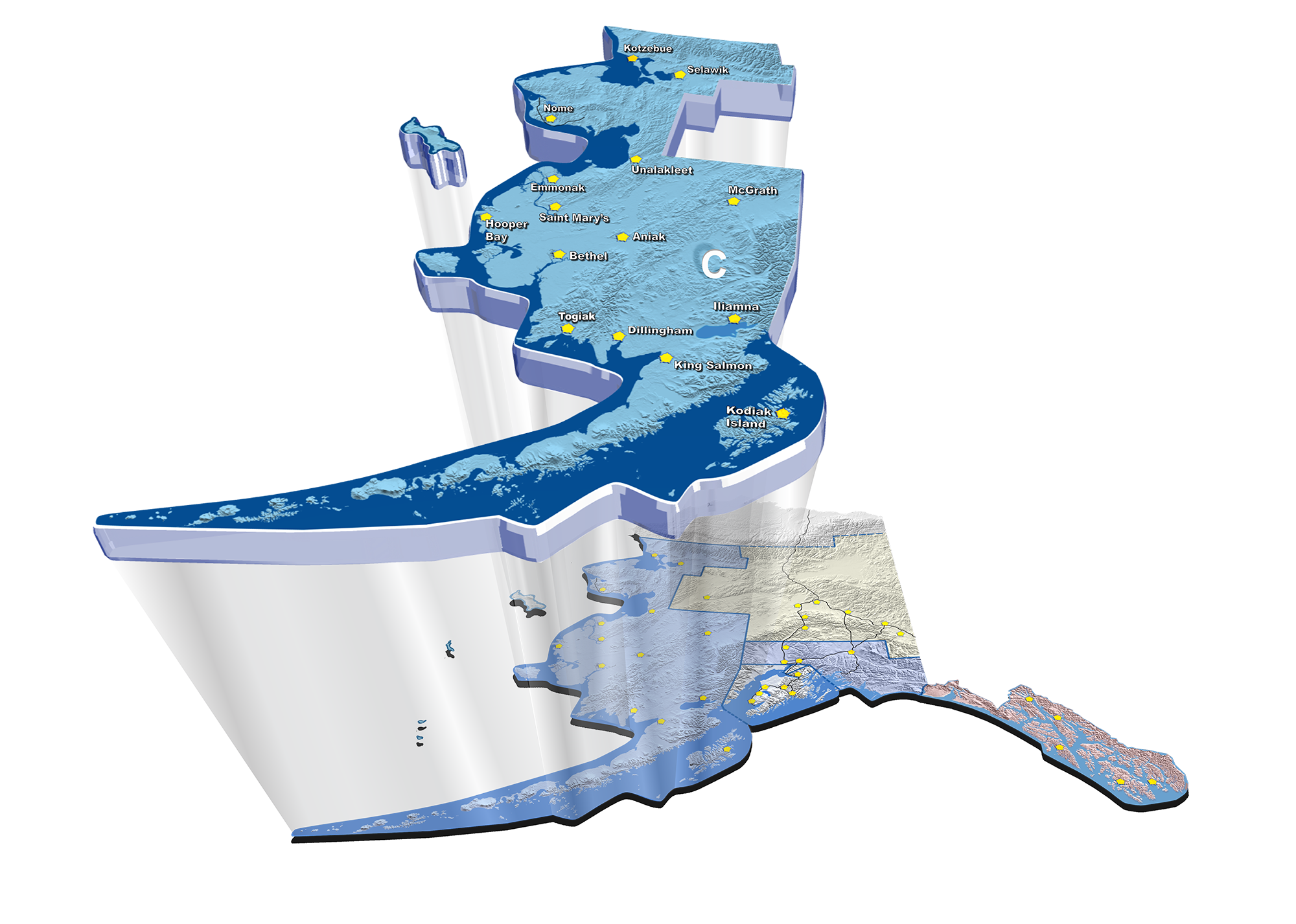 The Yukon Kuskokwim Delta (Bethel, Hooper Bay, Emmonak, St. Mary’s, and Aniak) serves an area larger than the state of Alabama.