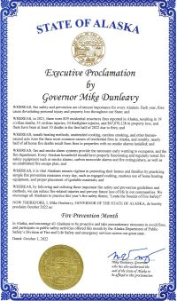 State of Alaska 2015 Executive Proclamation for Fire Prevention Month October 1, 2015