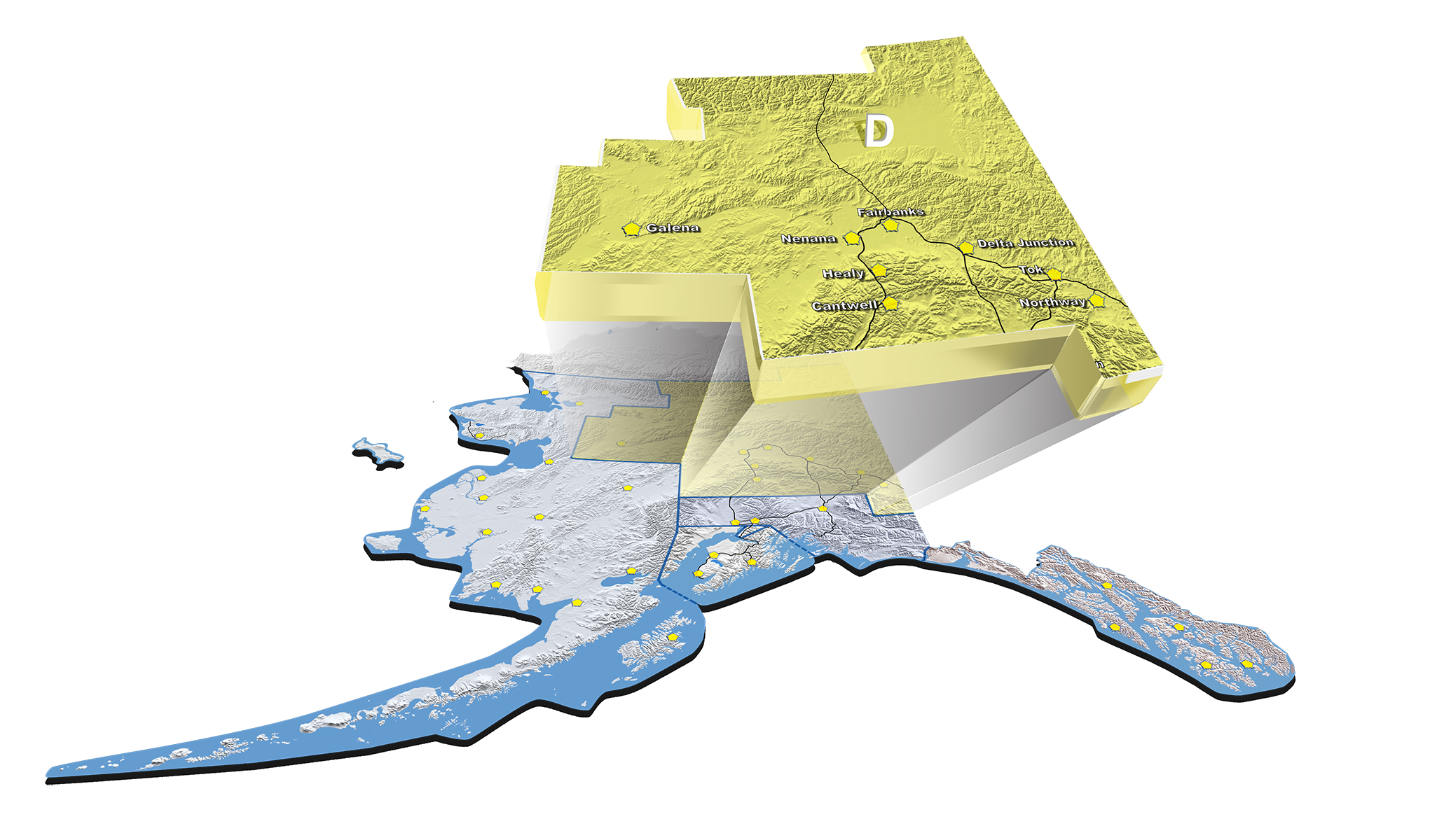 Approximately half of the detachment’s personnel were located in Fairbanks. This includes the 31-member uniformed patrol unit; a sergeant and three troopers assigned to a special projects unit to handle major property crime investigations, traffic fatalities and training; a sergeant and four troopers with the Fairbanks Rural Service Unit assigned to support rural communities outside of Fairbanks but within the detachment’s boundaries; and an AST sergeant and trooper with the Judicial Services Unit designated to transport prisoners between the Fairbanks courthouse and the Fairbanks Correctional Center. A major crimes unit is staffed by a Sergeant and 3 investigators (1vacant) and a Sexual Assault unit consisting of a Sergeant and 2 investigators (1 vacant) handle sexual assault and crimes against children. The other half of the detachment personnel were located in small posts located in Galena and along the Parks, Richardson, and Alaska Highways. The outposts ranged in size from the smallest in Northway with one trooper, to the largest in Delta Junction with one sergeant, four troopers, and one administrative assistant. There are an estimated 114,267 people living in the 163,700 square miles of land within detachment boundaries. D Detachment also served as the primary or secondary source of law enforcement for over 30 villages located in Interior Alaska. The Fairbanks-based Rural Service Unit supports the Village Public Safety Officers in the region and responds to calls for police services and search and rescue support in Interior Alaska. D Detachment currently has 6 VPSO’s working within its boundaries. The detachment utilizes a Fairbanks-based trooper pilot, Airbus AStar helicopter, Cessna 206 aircraft, Cessna 208 (rebuild in process) are assigned to support the VPSO program, Search and Rescue as well as rural villages.